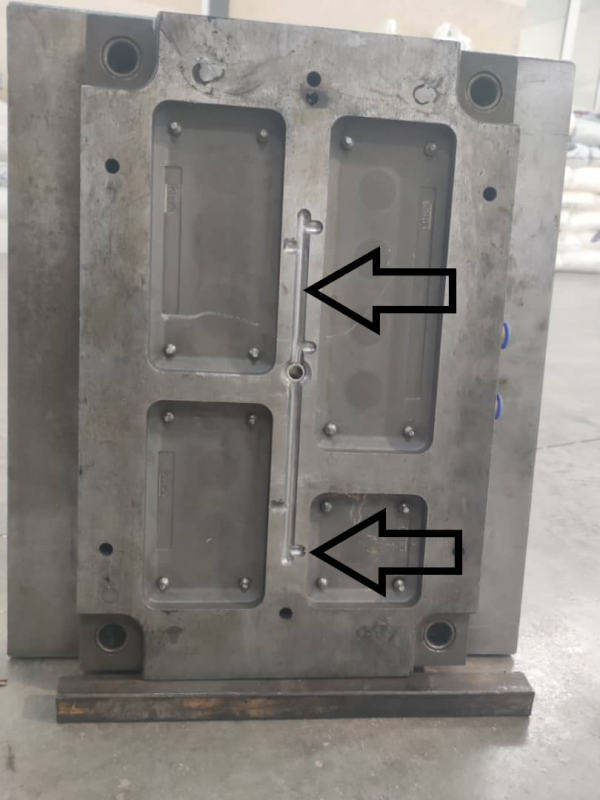 نکته حائز اهمیت این است که قطعه بزرگتر دوتا نقطه ورودی مواد پلاستیکی دارد که در غیر این صورت قطعا قطعه بزرگتر کامل پر نمیشود. - مواردی که باید بررسی شود : در بررسی مسیر راهگاه تزریق باید اطمینان حاصل شود که کانالها دچار گرفتگی، پلیسه، سوختگی یا سایش غیرعادی نباشند و سطح داخلی مسیر یکنواخت و سالم باشد تا مذاب بدون افت فشار و بهصورت یکنواخت به حفرههای قالب منتقل شود.