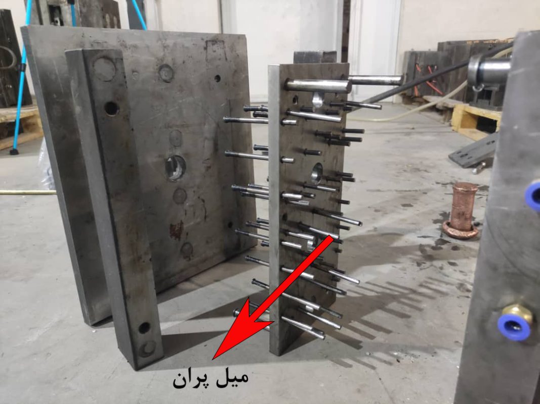 - میل پران : میل پران قالب تزریق پلاستیک میله هایی است که قطعه تولید شده را از قالب خارج میکند و حرکت روان و سالم آن برای خروج صحیح قطعه ضروری است.